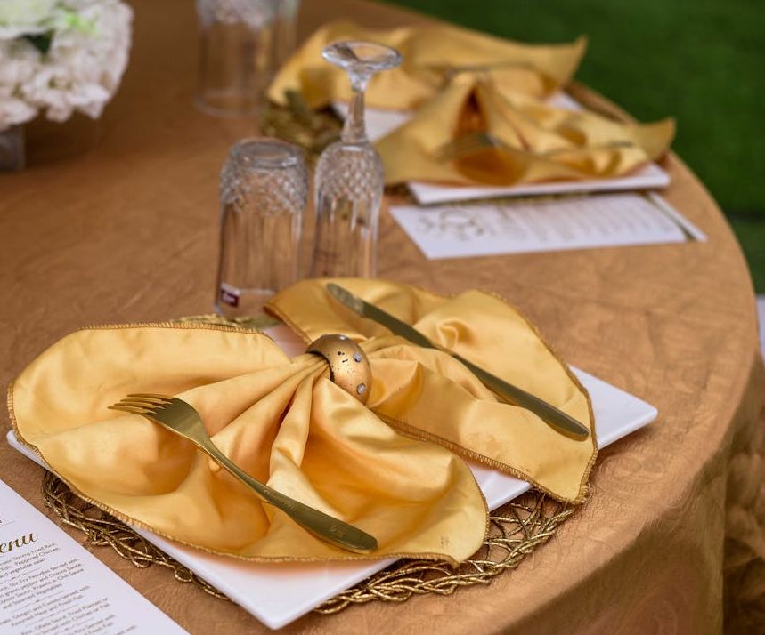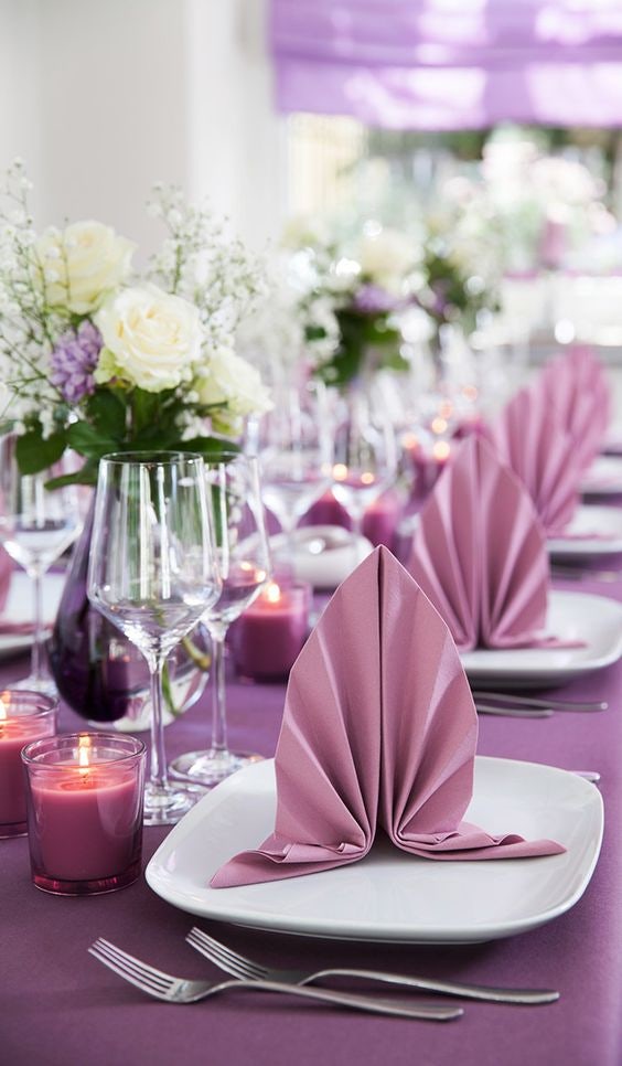 Важливо: якщо в оформленні столу застосовуються свічки, вази та інші аксесуари, колір серветок можна підбирати під них, а не під скатертину.